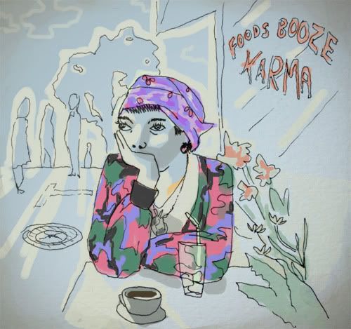 här sitter vi utanför ett superfint café med alla sorters pettsonprylar inuti.